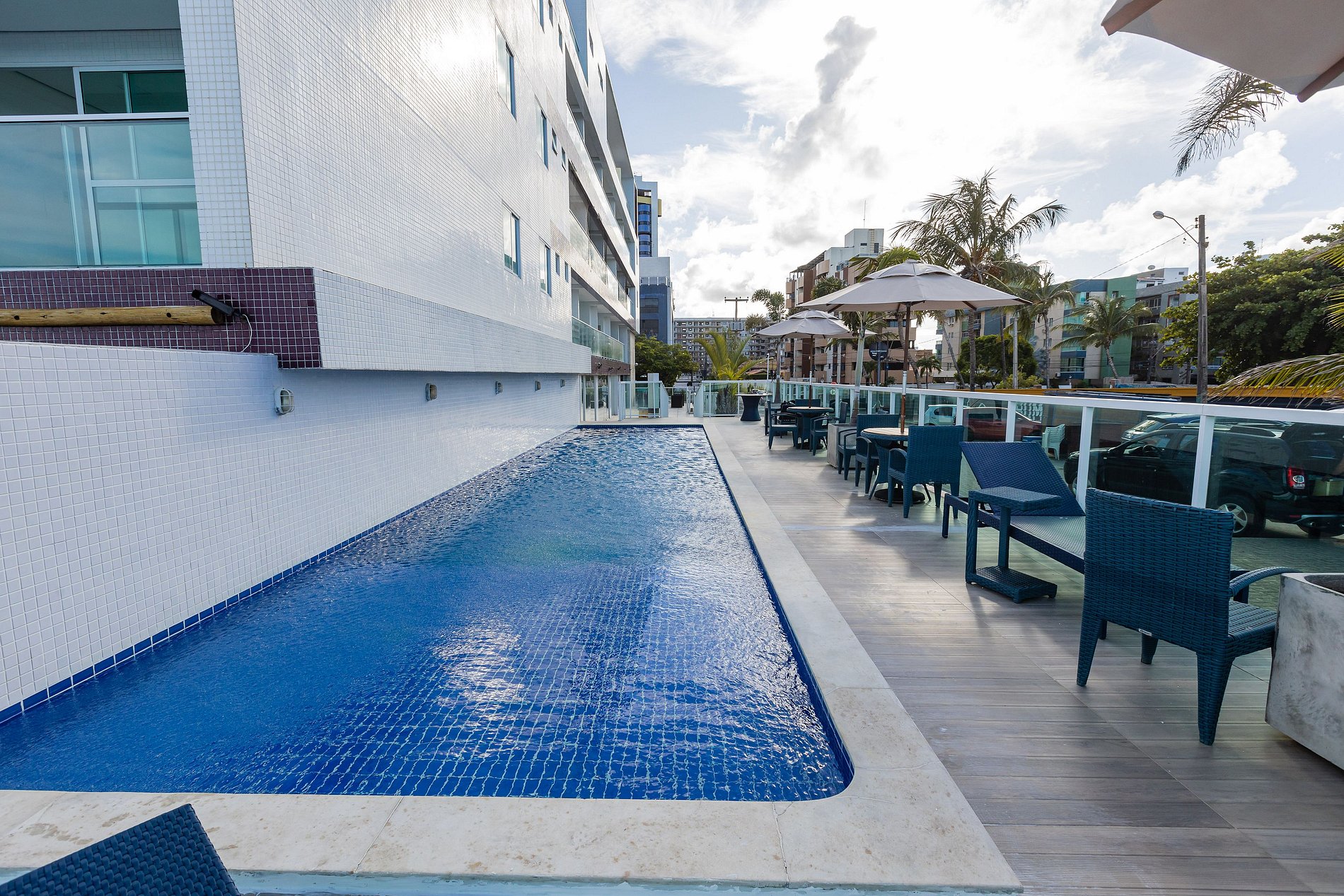 O prédio conta com serviço de recepção 24 horas, estacionamento gratuito, piscina ao ar livre (fechada as segundas para limpeza), apartamentos confortáveis, revisados e varanda com vista para o mar. Ideal para quem quer aproveitar suas férias num paraíso.