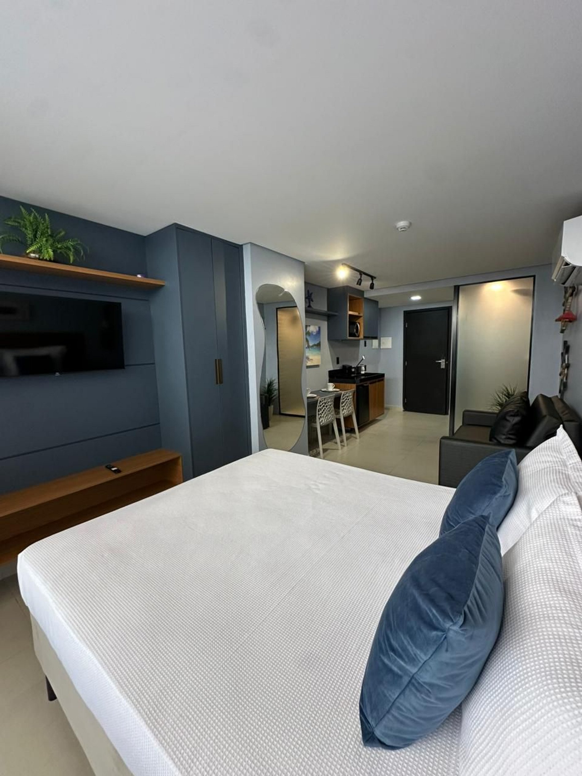 Design e Aconchego: Este estúdio foi finamente decorado com um design contemporâneo e sofisticado, otimizando o espaço para garantir máximo conforto. Possui detalhes modernos e acabamentos de alta qualidade.