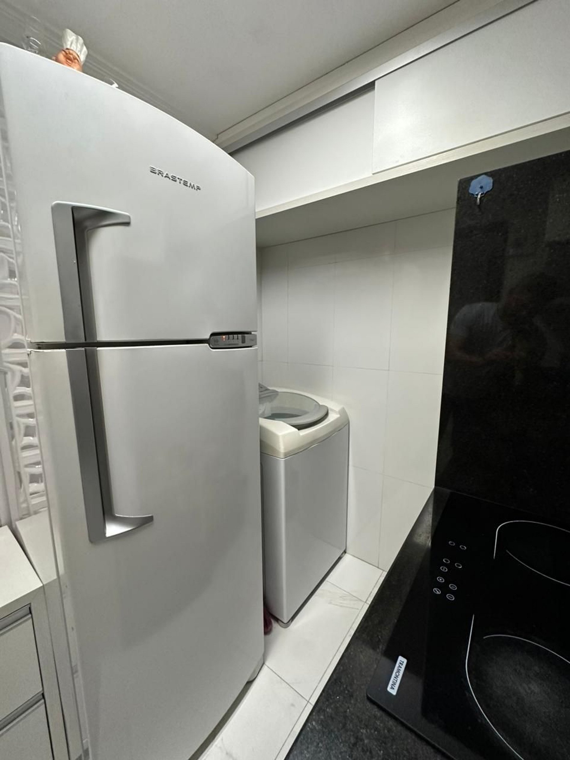 * **Cozinha Completa:** A cozinha é totalmente equipada com fogão, geladeira *full size*, micro-ondas, e todos os utensílios necessários para o preparo de refeições caseiras.