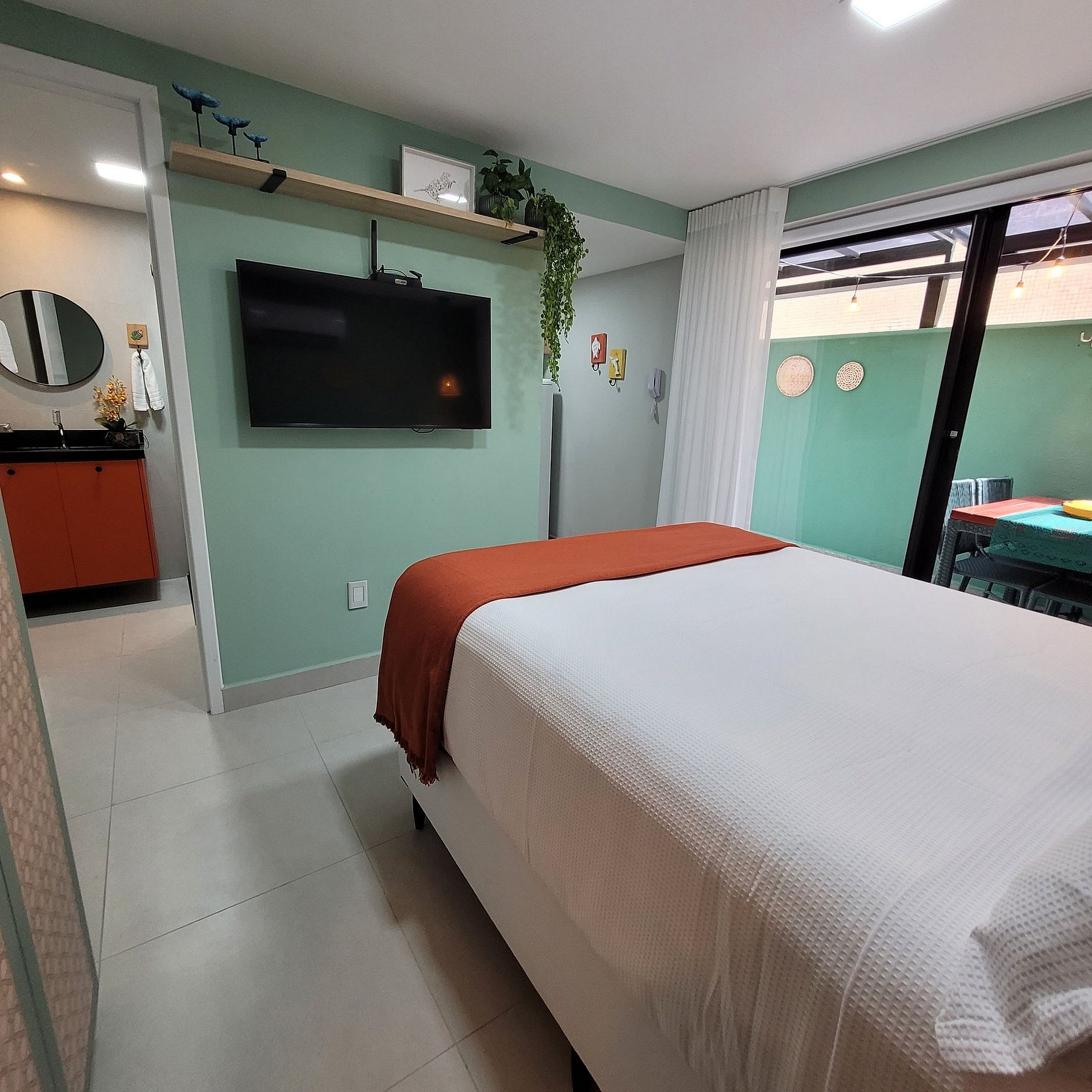 Conveniência: Possui enxoval de cama e banho de qualidade hoteleira, Wi-Fi de alta velocidade e Smart TV.