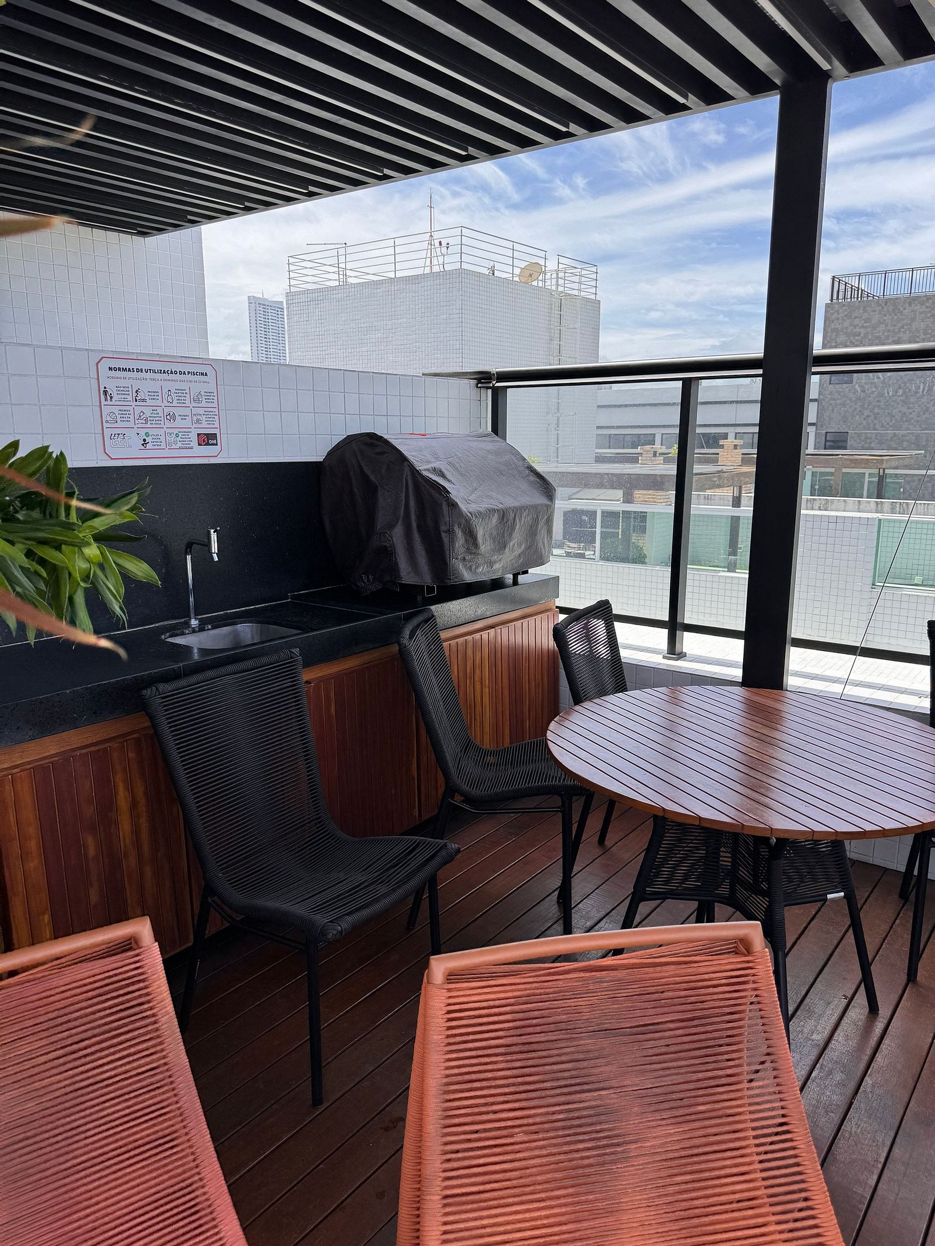 No local é possível desfrutar de área de convivência, aree de cowork, as vagas de garagem sao rotativas e recepção 24h. Piscina na cobertura das 08 ás 20 horas - fechada as segundas para limpeza, a churrasqueira ver com o anfitriao as regras de uso e sobre reservas