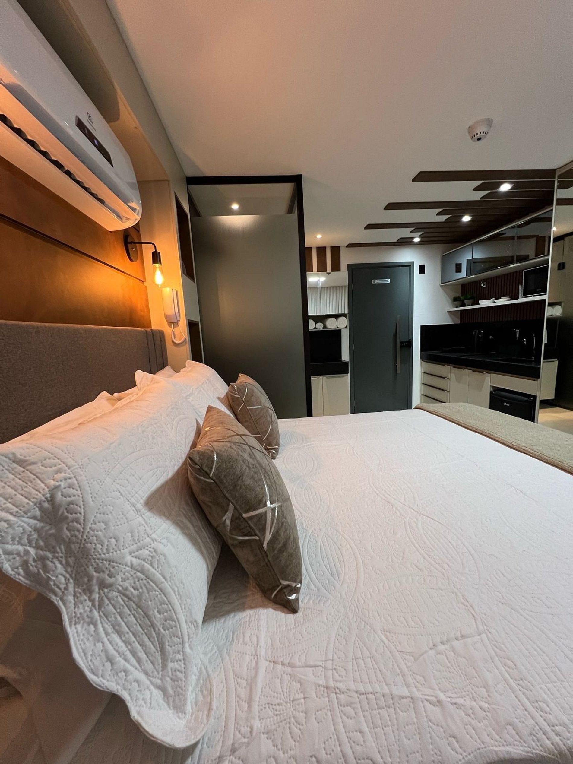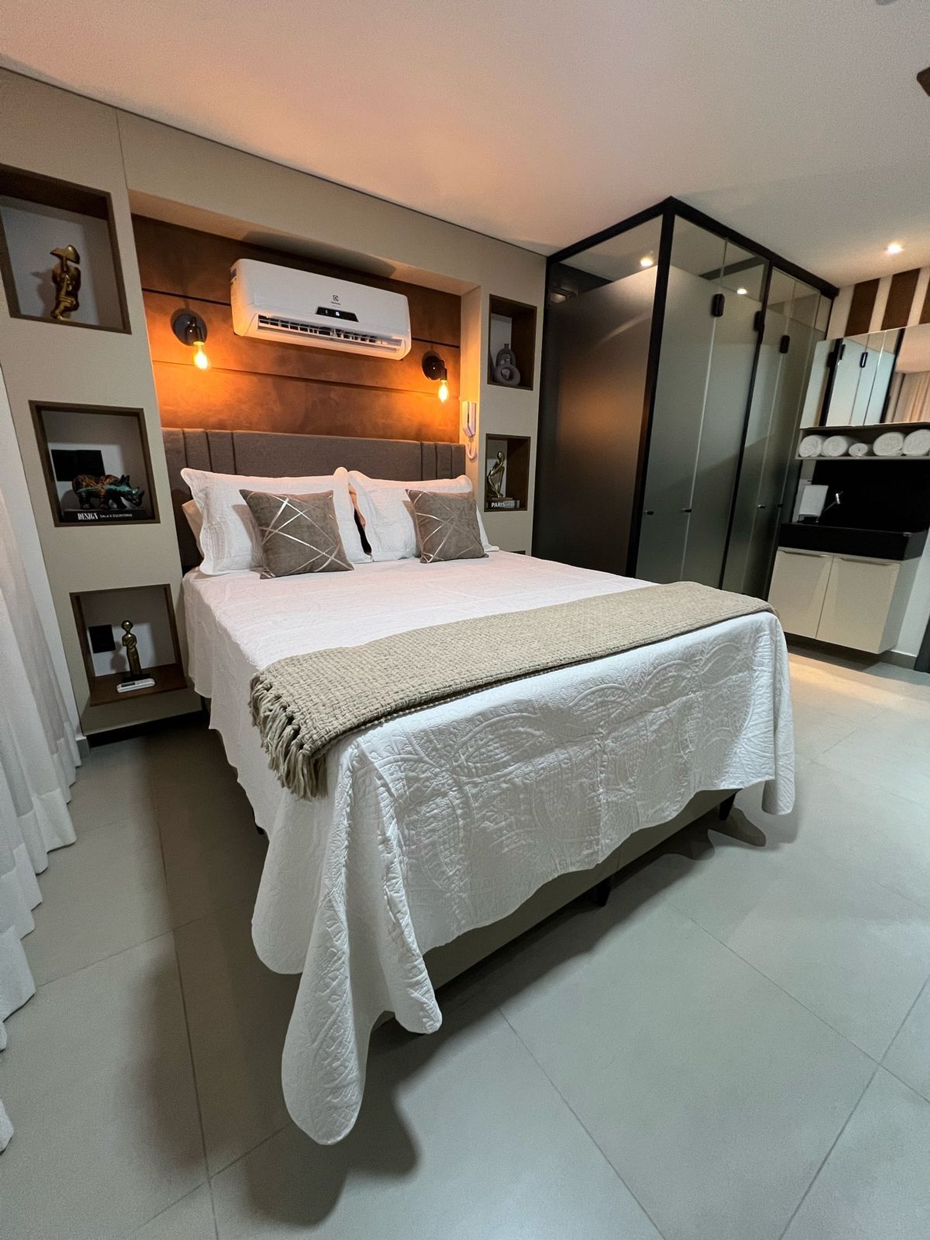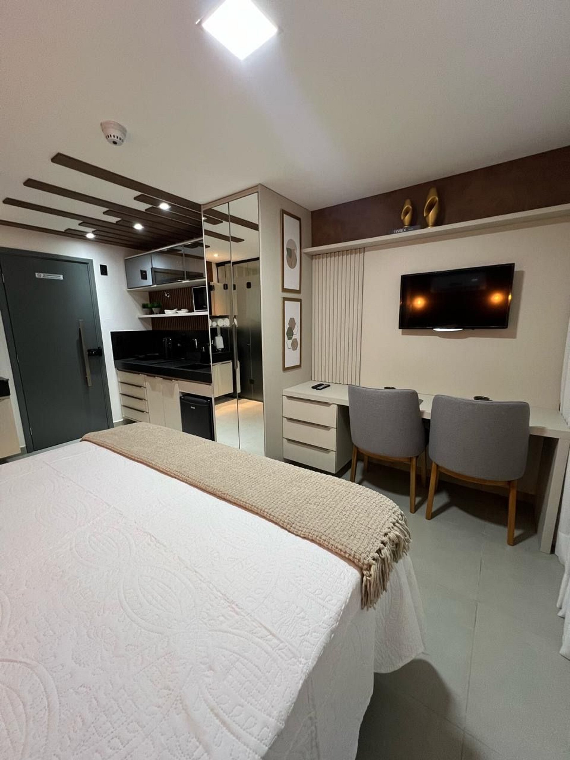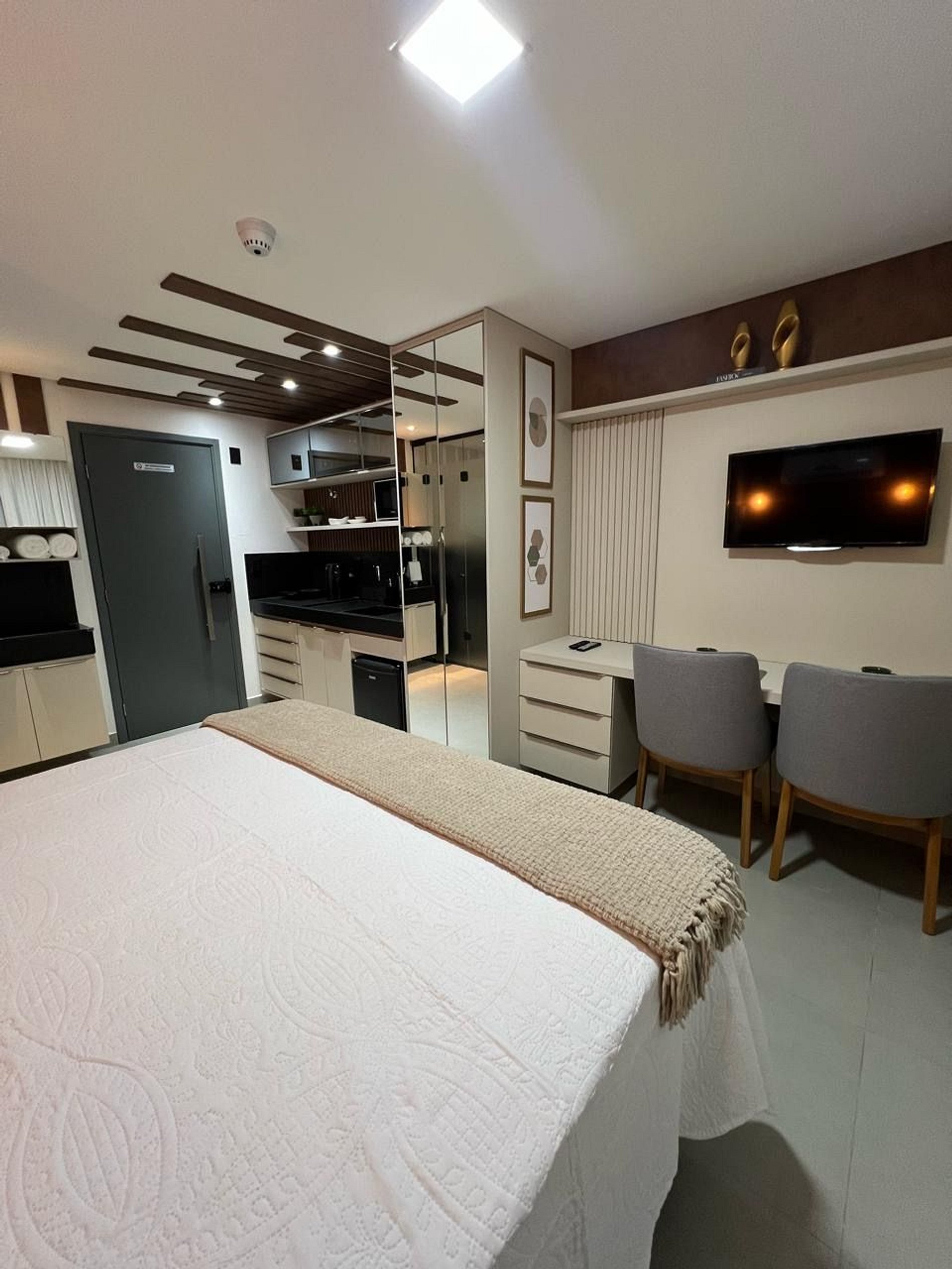 Studio lindo, estiloso, confortável, para uma você aproveitar a sua estadia em João Pessoa com bastante conforto. Com cozinha compacta e equipada, o que permite você preparar suas refeições rápidas, nos fornecesmos roupa de cama, toalhas e toalhas de praia