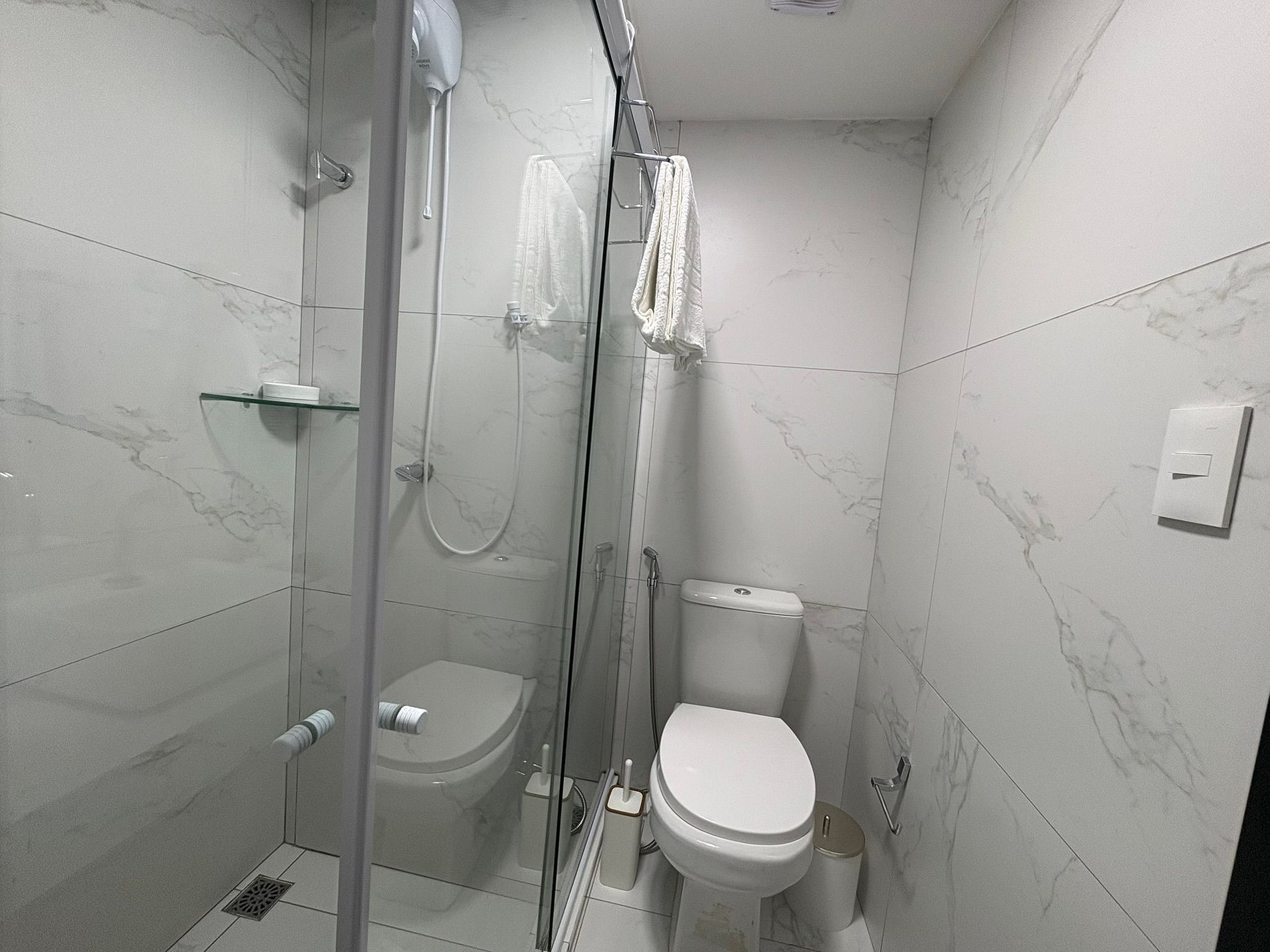 Banheiro: Moderno e equipado com chuveiro quente.