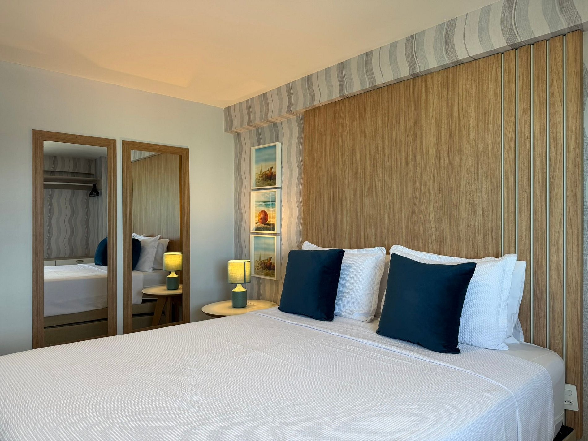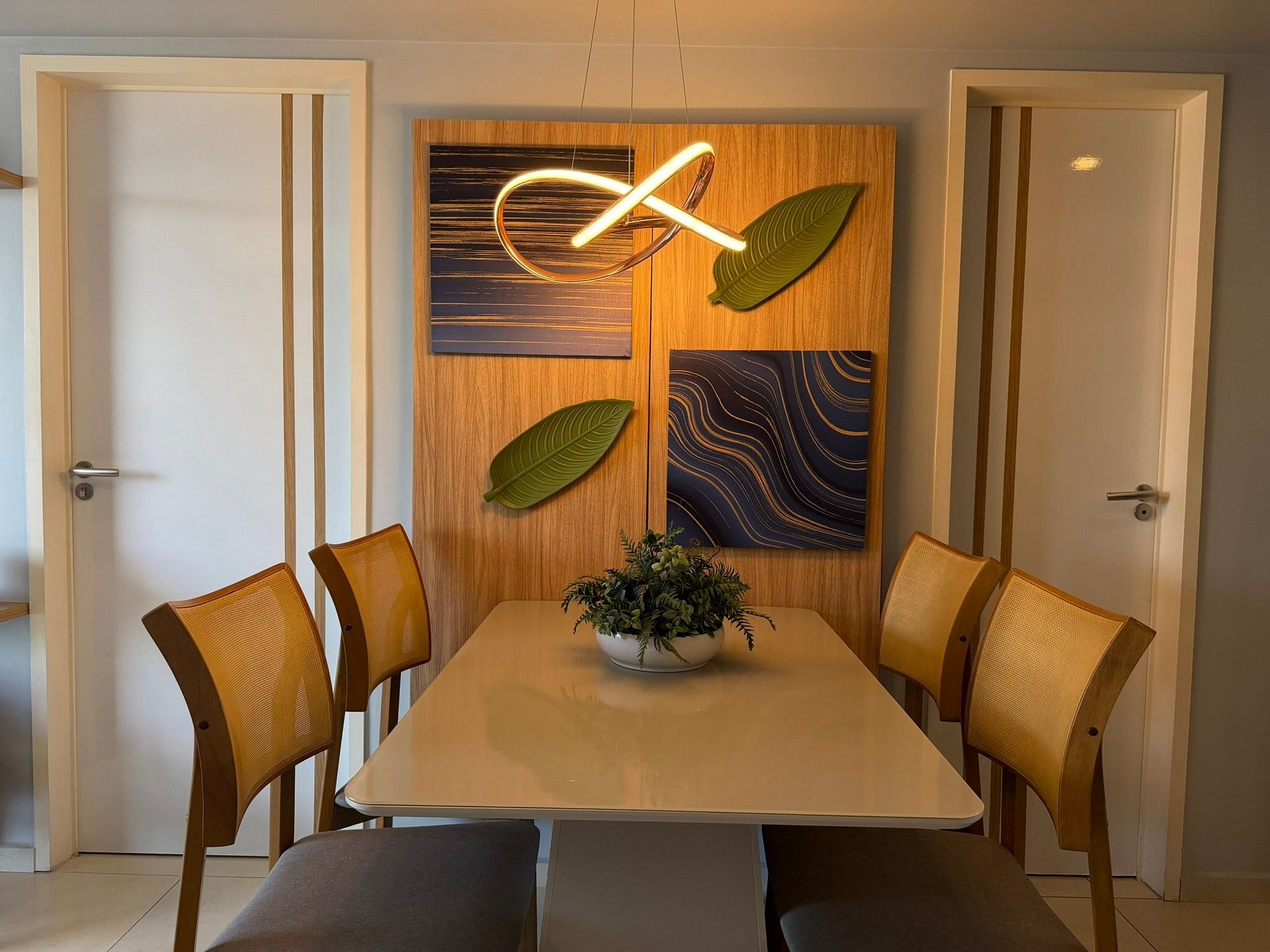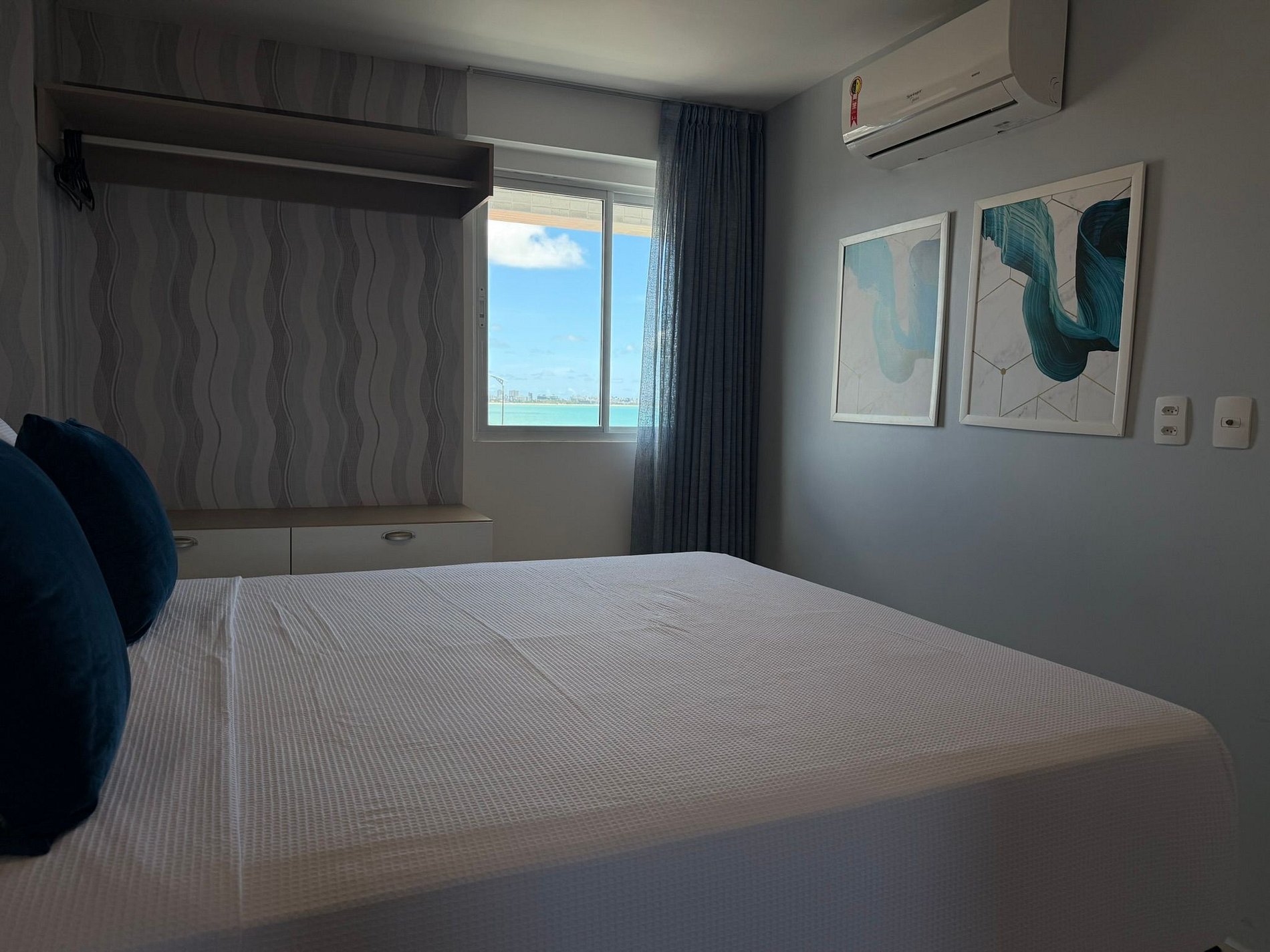 Lindo apartamento decorado e ambiantado, sala e quartos climatizado, dois quartos send um deles suíte, mais banheiro social, , mesa de jantar, maquina de lavar, varanda, edf pe na areia, climatizado, wi-fi, recepção 24h, e duas vagas na garagem.