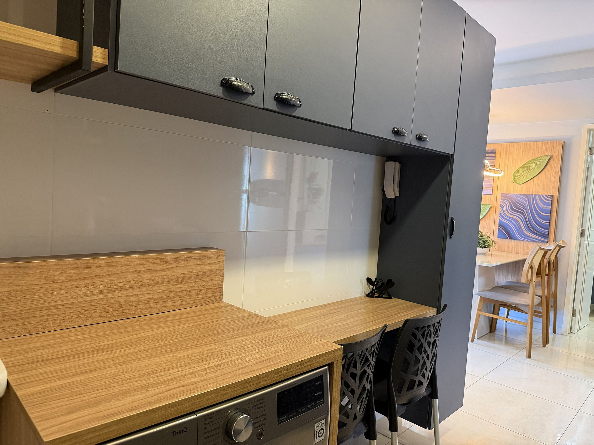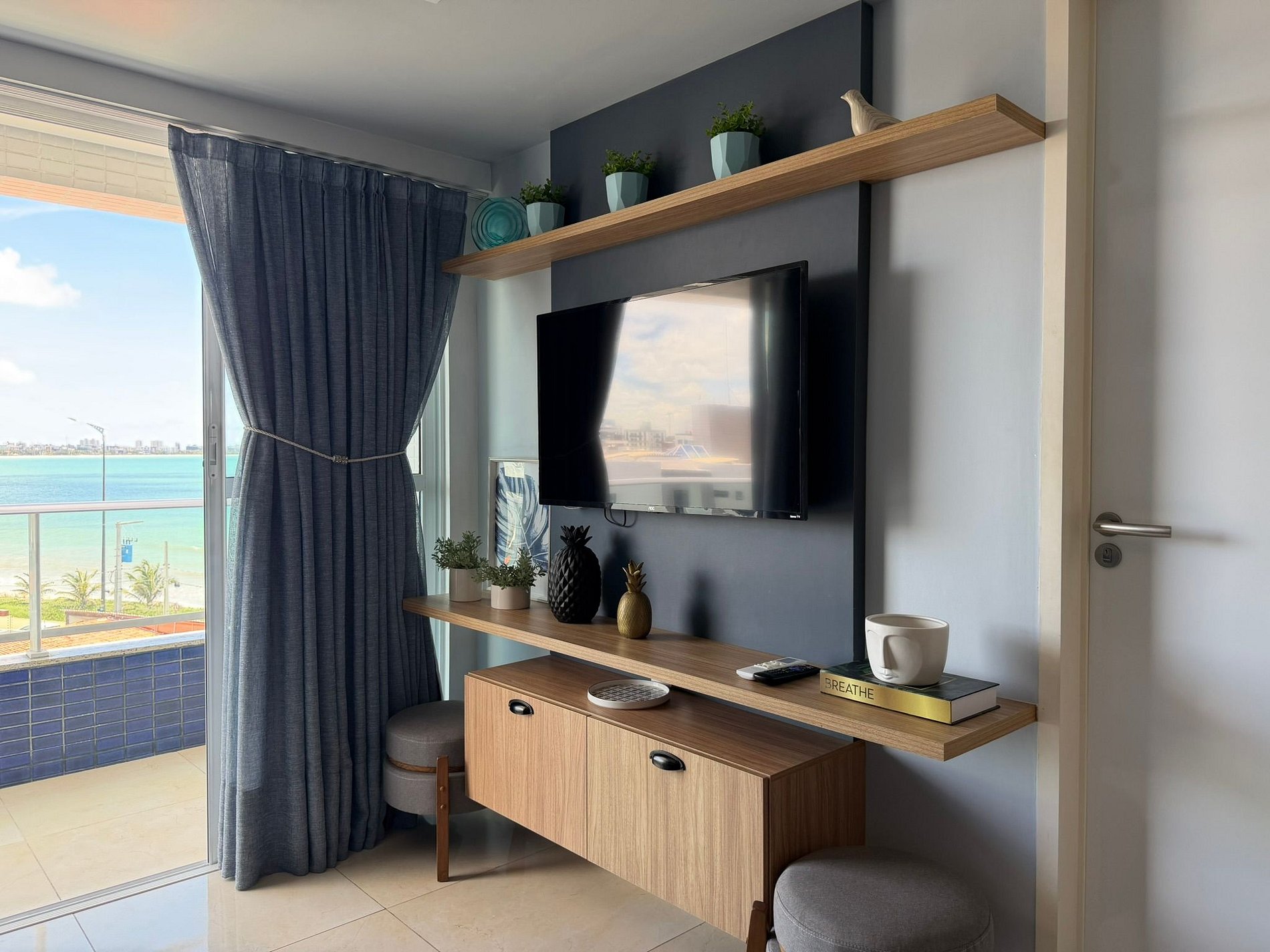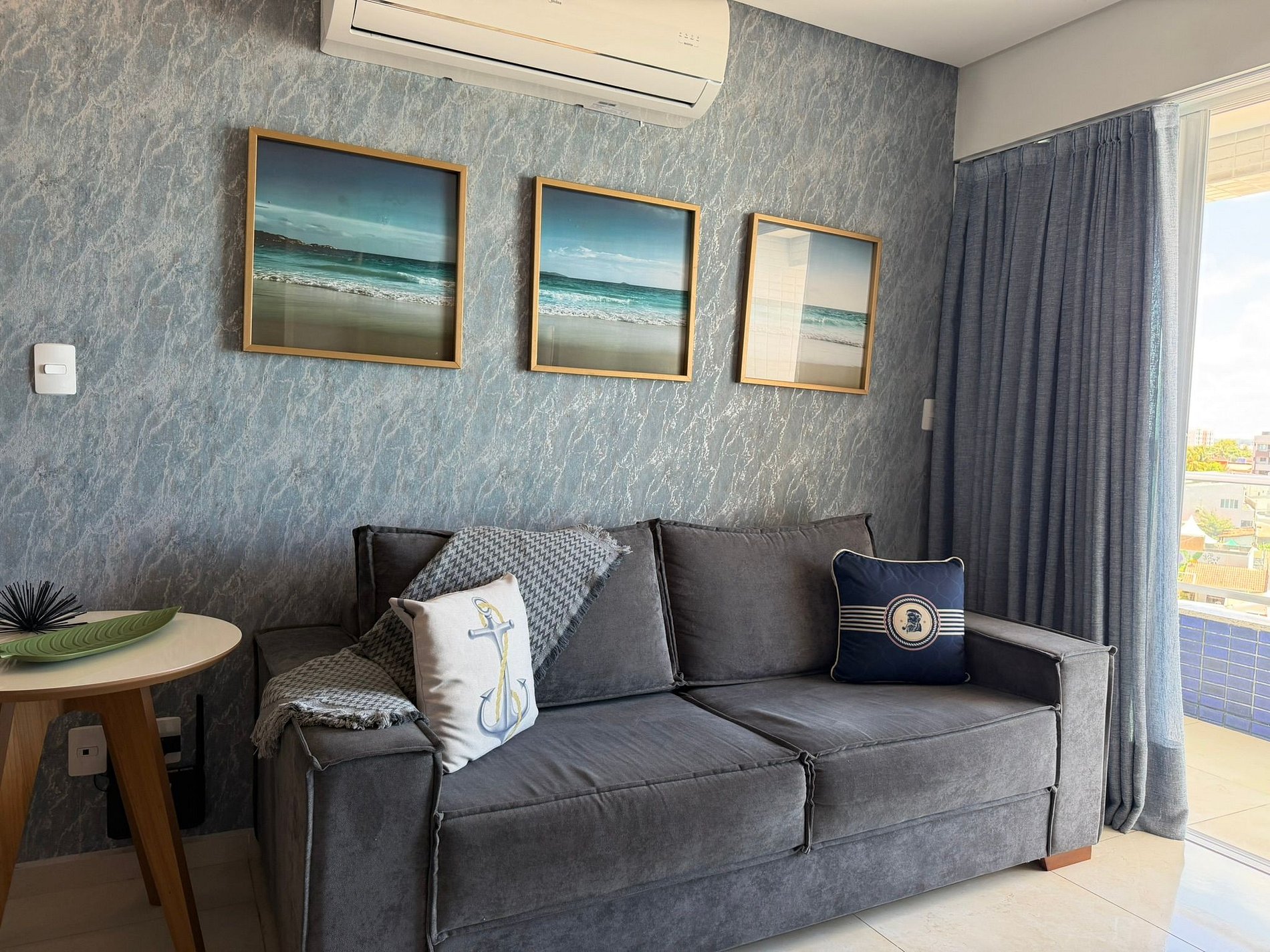 Lindo apartamento decorado e ambiantado, sala e quartos climatizado, dois quartos send um deles suíte, mais banheiro social, , mesa de jantar, maquina de lavar, varanda, edf pe na areia, climatizado, wi-fi, recepção 24h, e duas vagas na garagem.