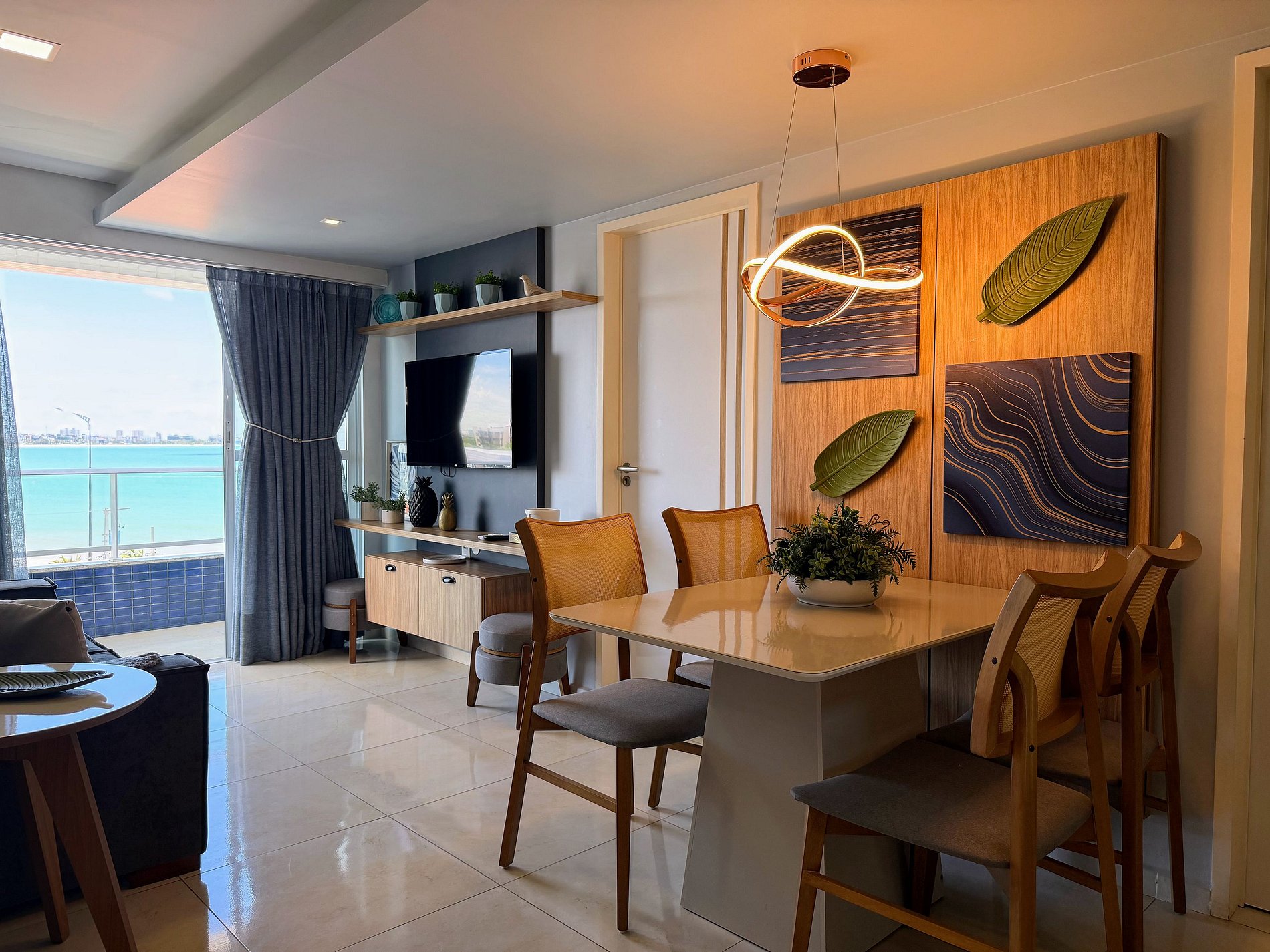 Apartamento Beira Mar, decorado, 2 quartos sendo 1 suíte, contém mais um banheiro social, em ótima localização, perto de bares, restaurantes, padarias, bancos , provendo um ótimo local de férias para você e sua família, o apartamento acomoda ate 6 hóspedes. Com todos eletrodomésticos inclusos, inclusive lava e seca.